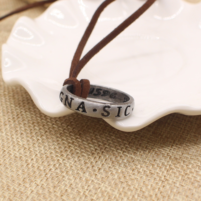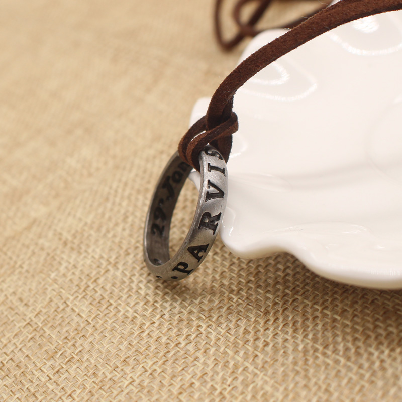 欧美电影游戏周边神秘海域4Drake指环吊坠项链 潮男皮绳挂件配饰