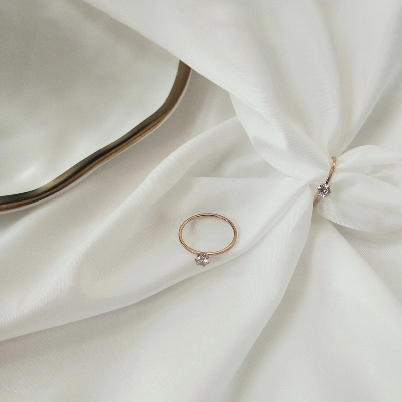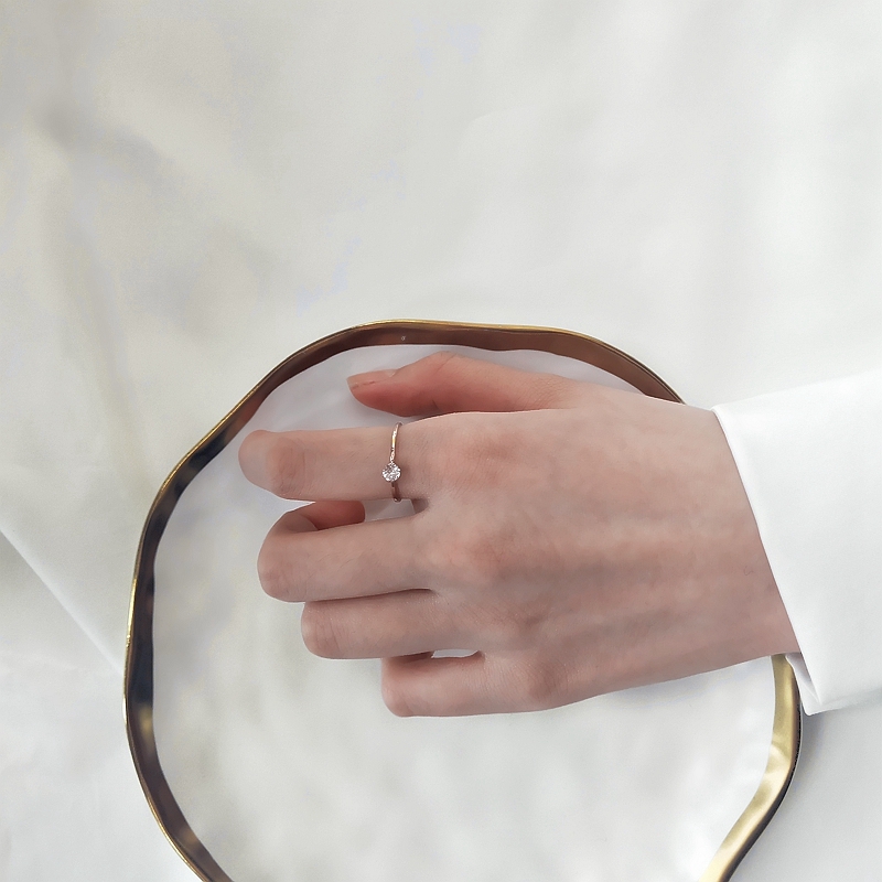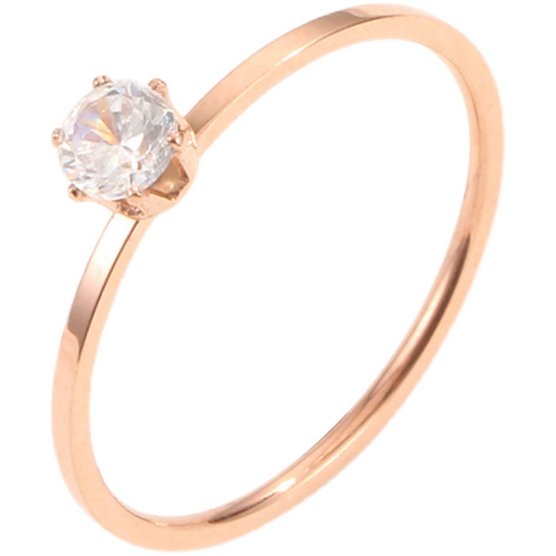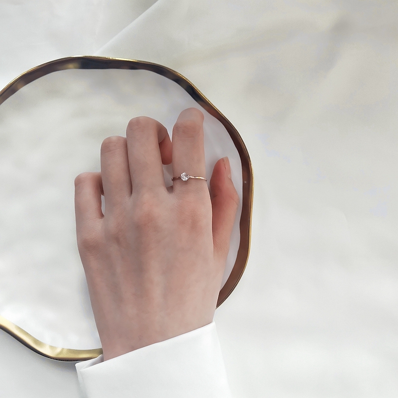 钛钢不掉色小众轻奢玫瑰金镶钻素圈细戒INS潮简约百搭气质戒指女