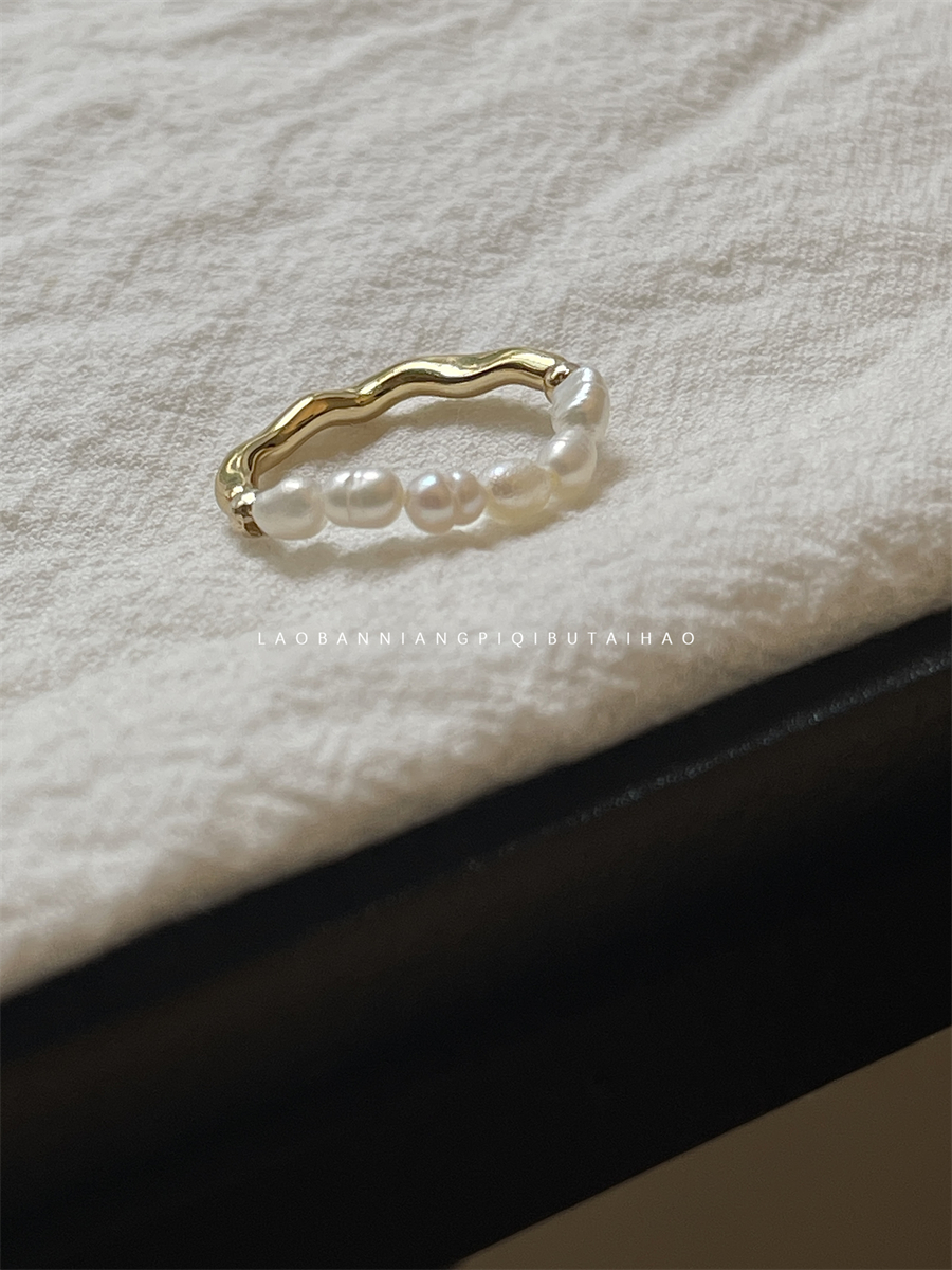 好看!淡水珍珠拼接不规则巴洛克保色法式简约冷淡风戒指女10538