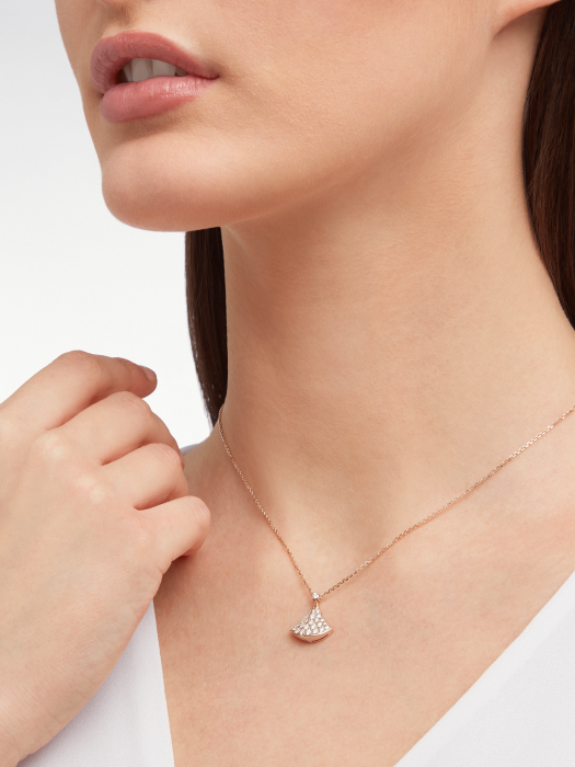 Bvlgari宝格丽DIVAS’ DREAM系列满钻扇子项链18K玫瑰金男女同款