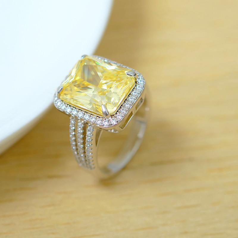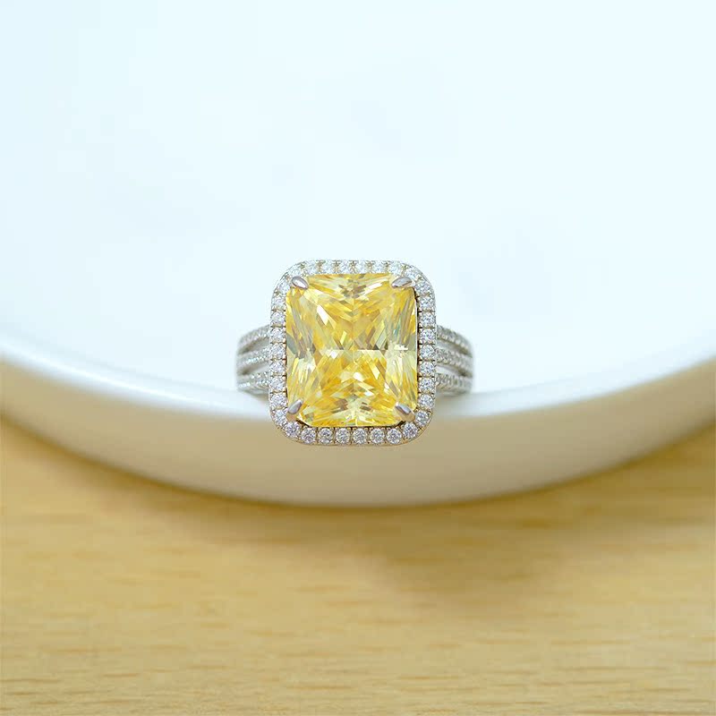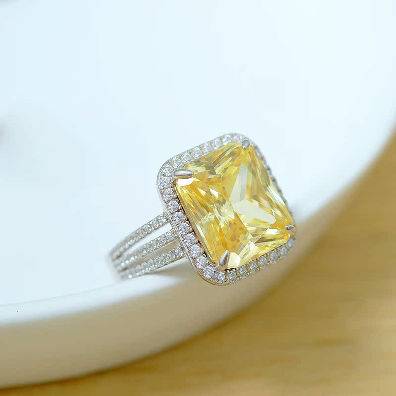 YINGBOO 高级感法式纯银高碳钻锆石重工微镶嵌纯银黄钻戒指指环女