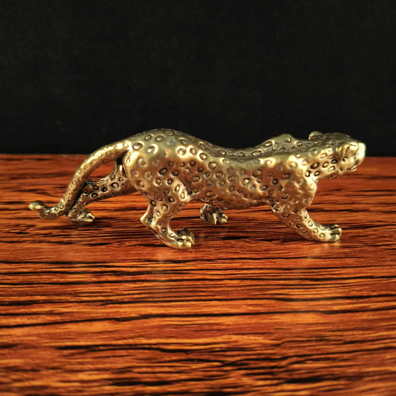 实心铜金钱豹摆件黄铜铜器迷你铜豹子手把件把玩小铜件景区网红款