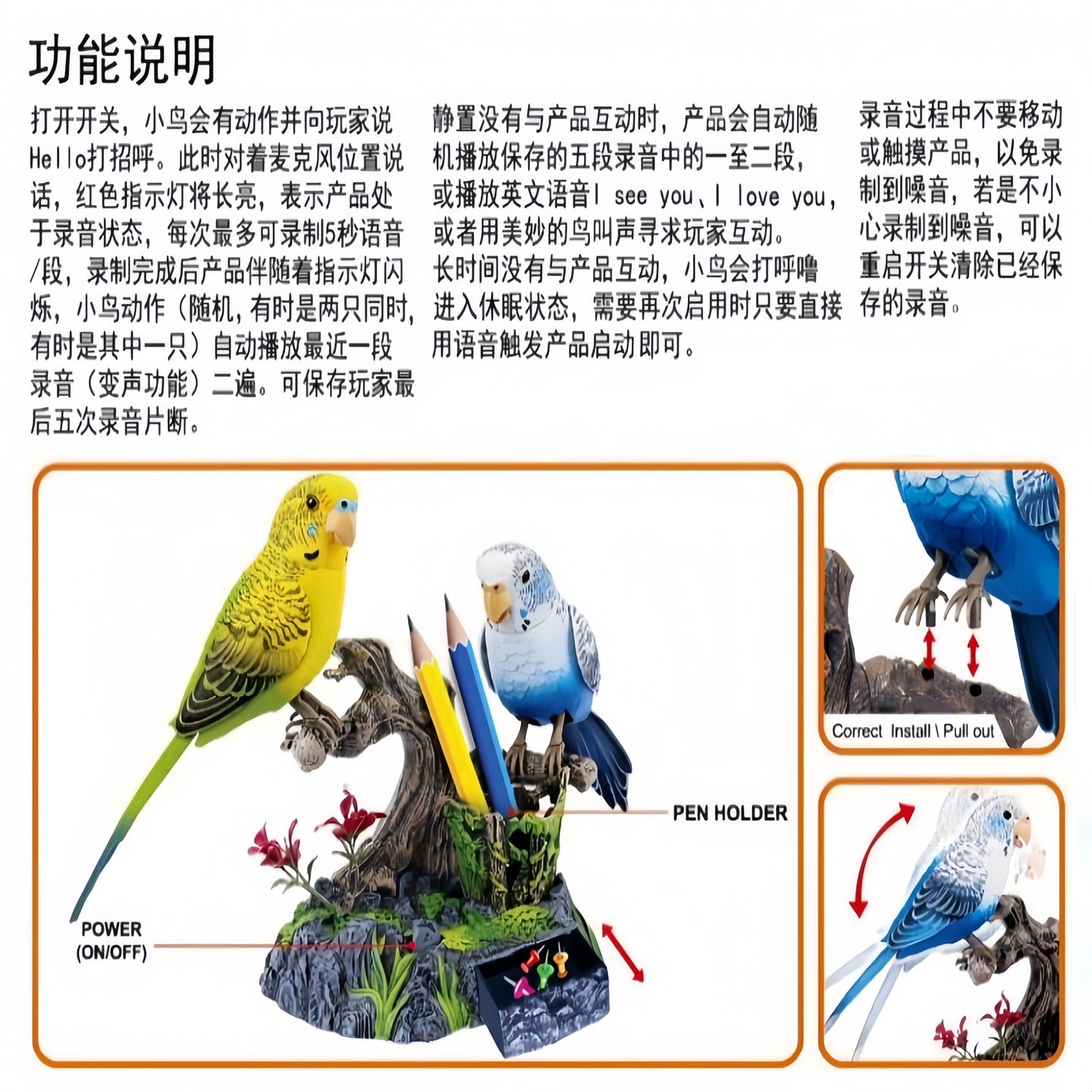 仿真声控小鸟摆件电动会叫会动会学说话鹦鹉玩具老人解闷解压玩偶