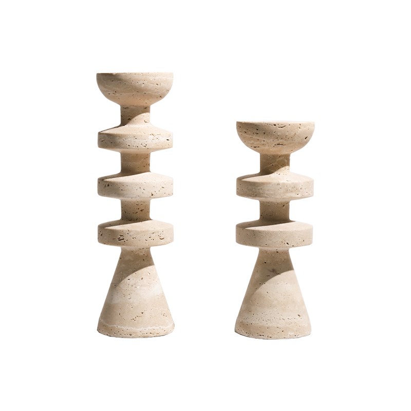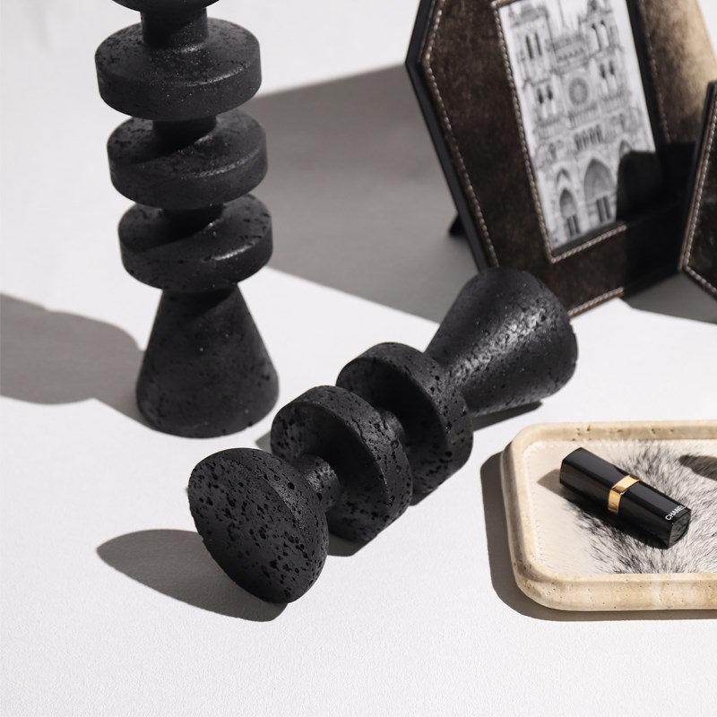 侘寂风黑色洞石烛台摆件客厅玄关餐厅家居Y样板间摆件