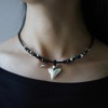 原创藏风皮绳纯银项链小众设计复古天然鲨鱼牙手工锁骨链莎头stp