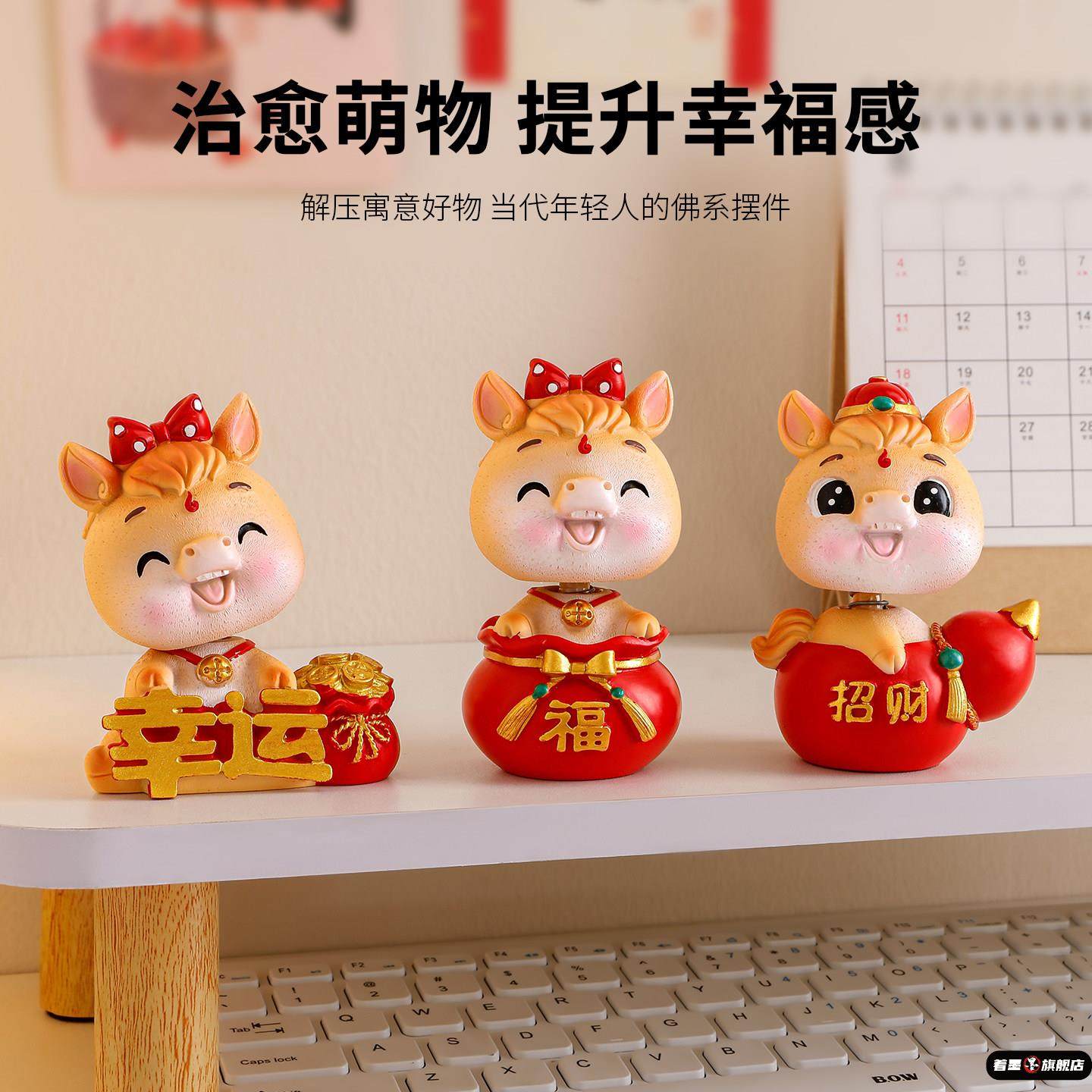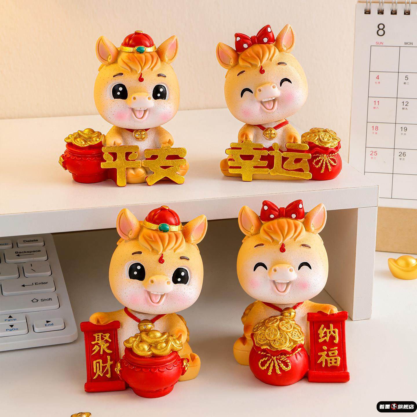 马年车载小马摆件2026马年吉祥物桌面公仔工位装饰品本命年生肖马