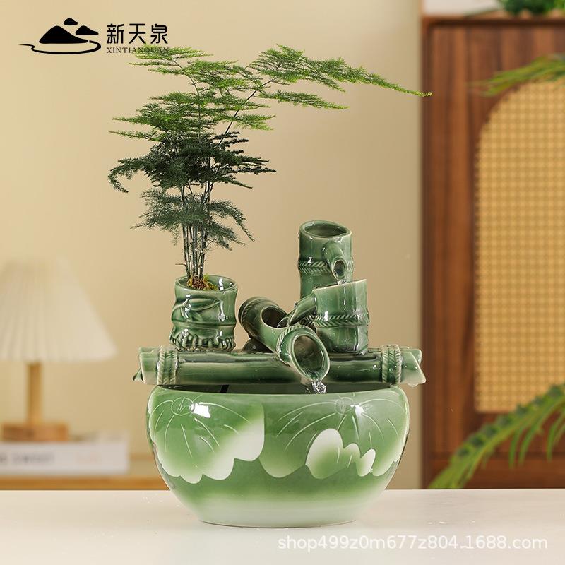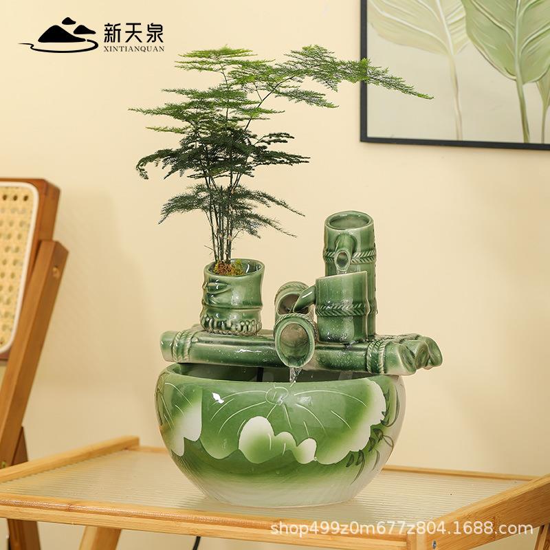 用瓷流水摆件水循环喷鱼缸小型家客厅电视柜桌NOB面装饰家陶居泉