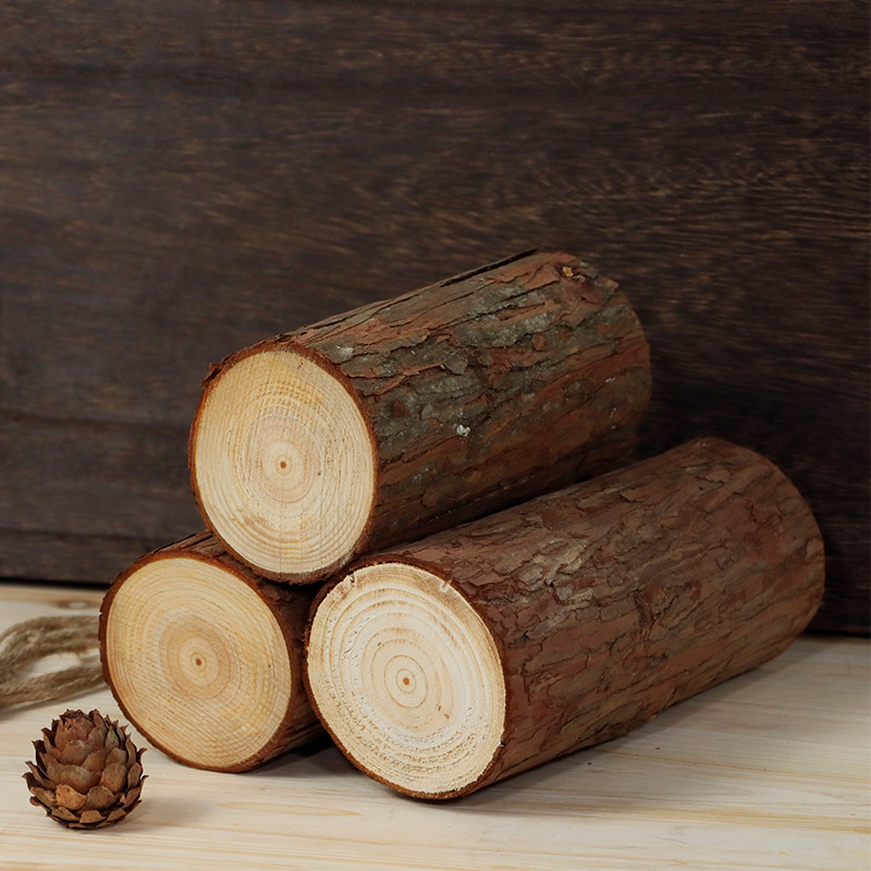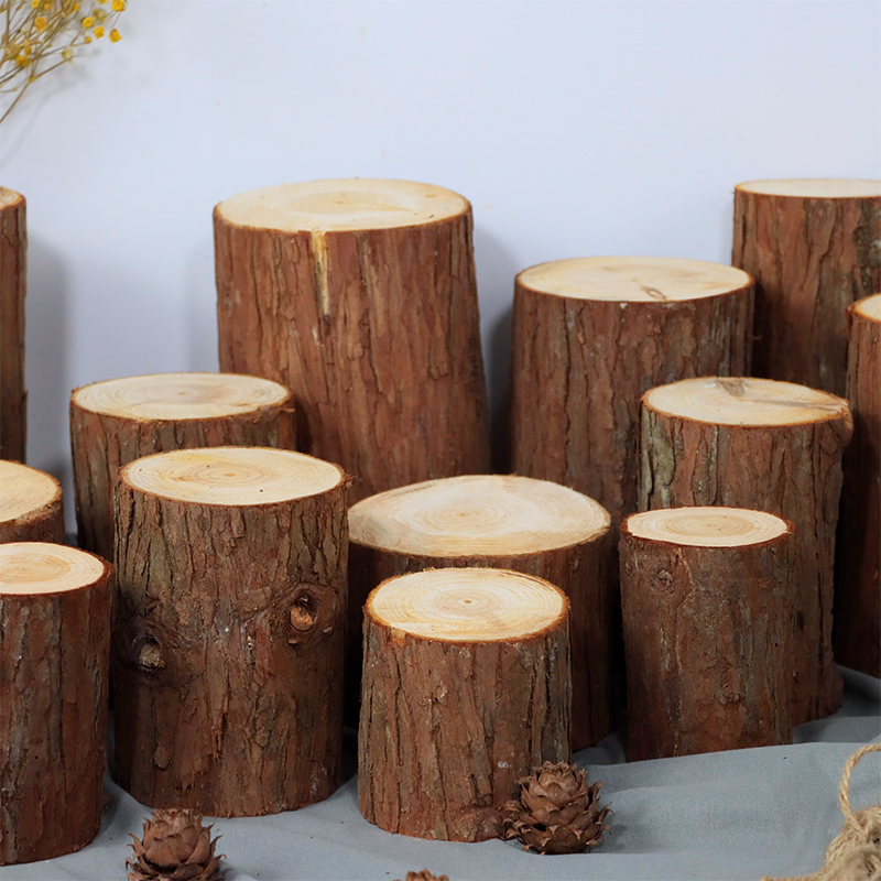 杉木实木桩带皮树段原木现切墩摆件圆木头底座木段家居装饰可定制