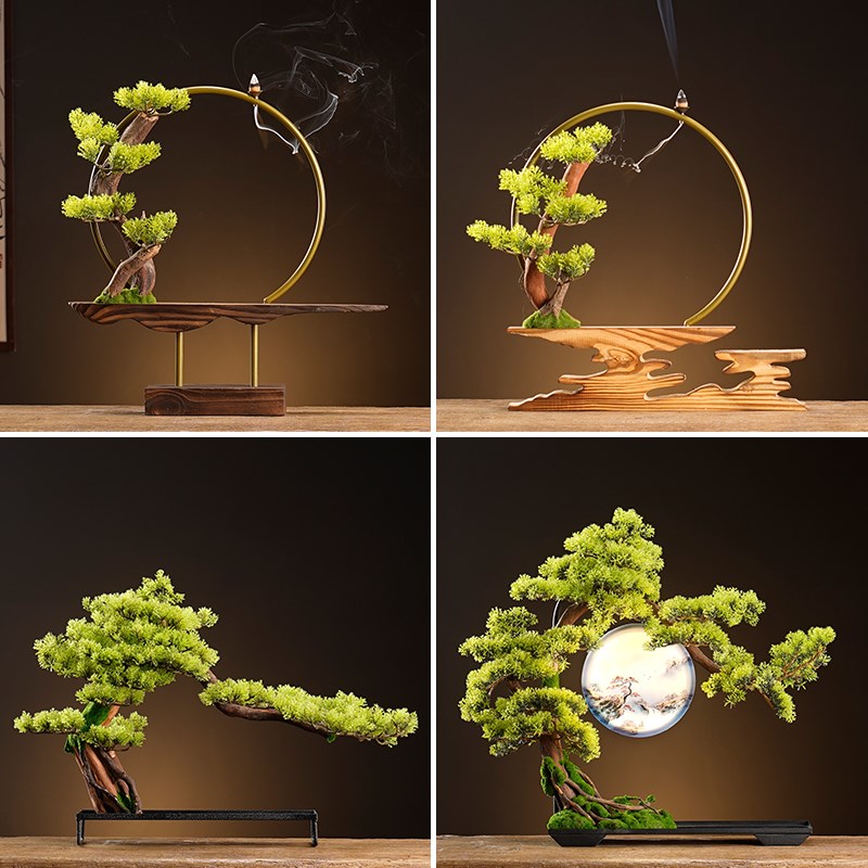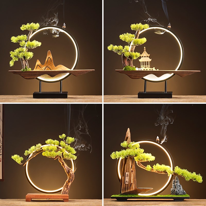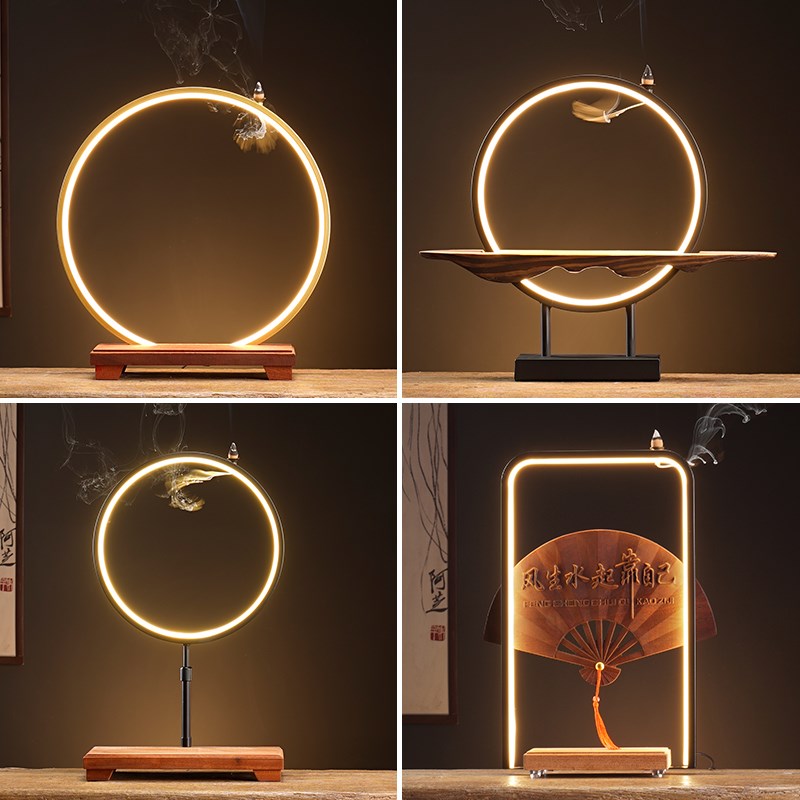 创意桌面铁艺灯圈实木底座摆件风化木根雕L展示台玄关办公室博古