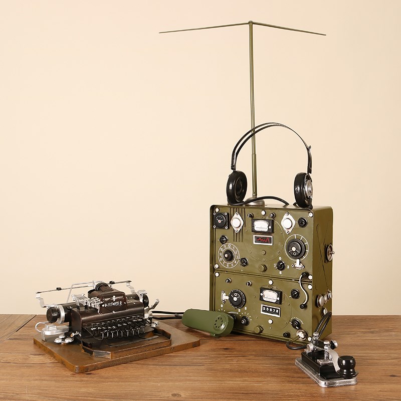 复古怀旧老式手工创意无线电台发报机电报机模型道具门厅装饰摆件