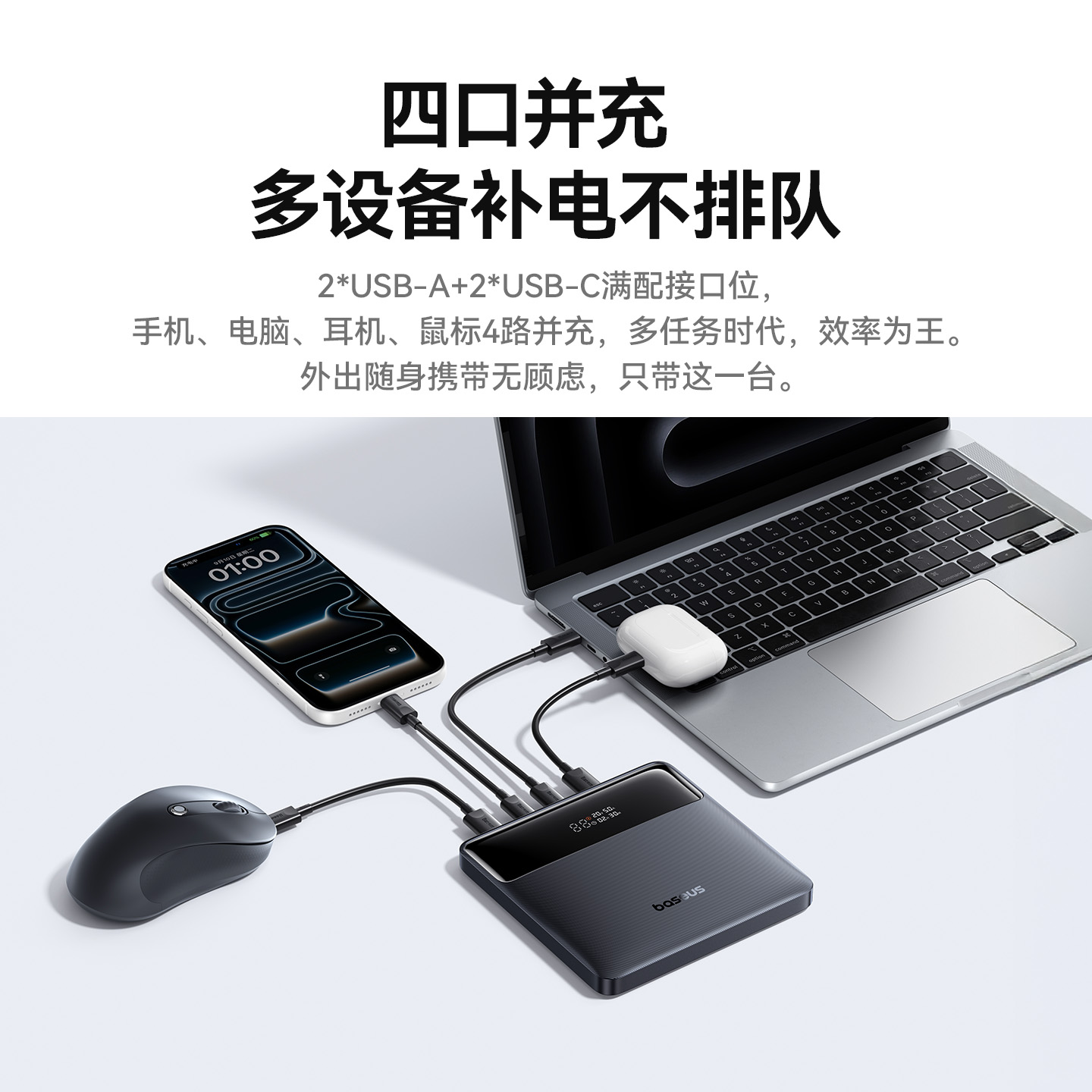 【3c认证充电宝】倍思100W充电宝大功率数显20000毫安容量双向快充适用苹果17手机华为笔记本电脑Macbook