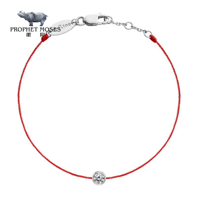 Redline/红绳女士Pure 0.10克拉圆形钻石白金绳制简约百搭手链