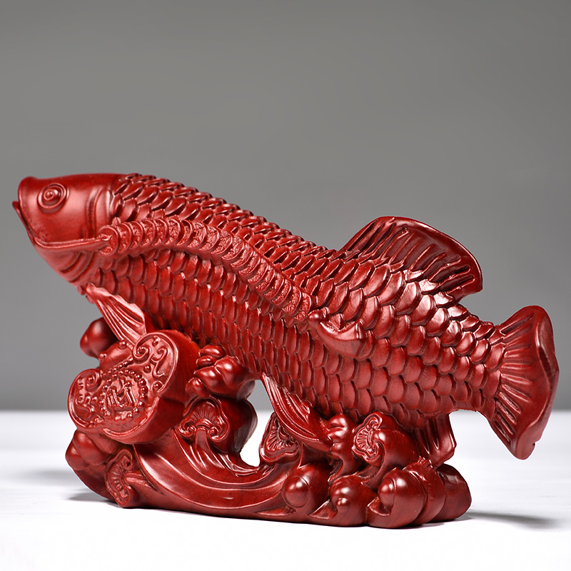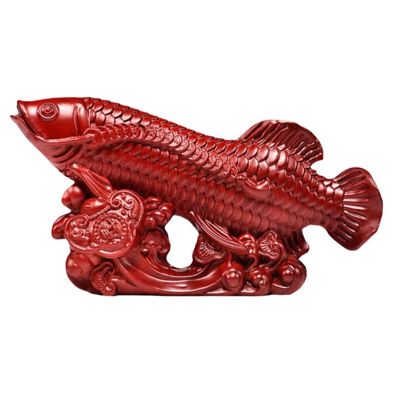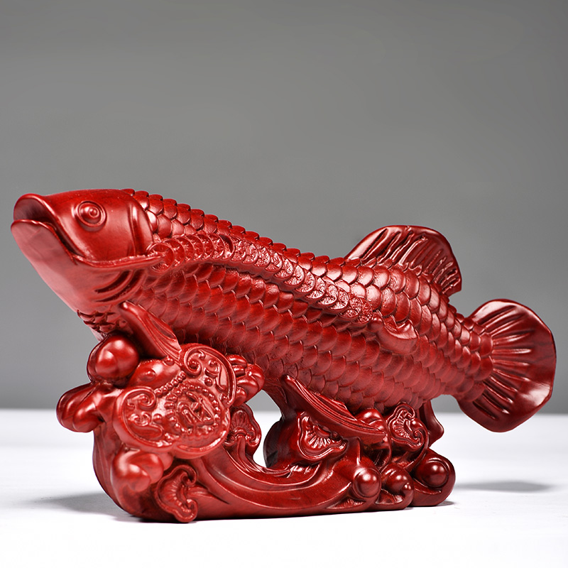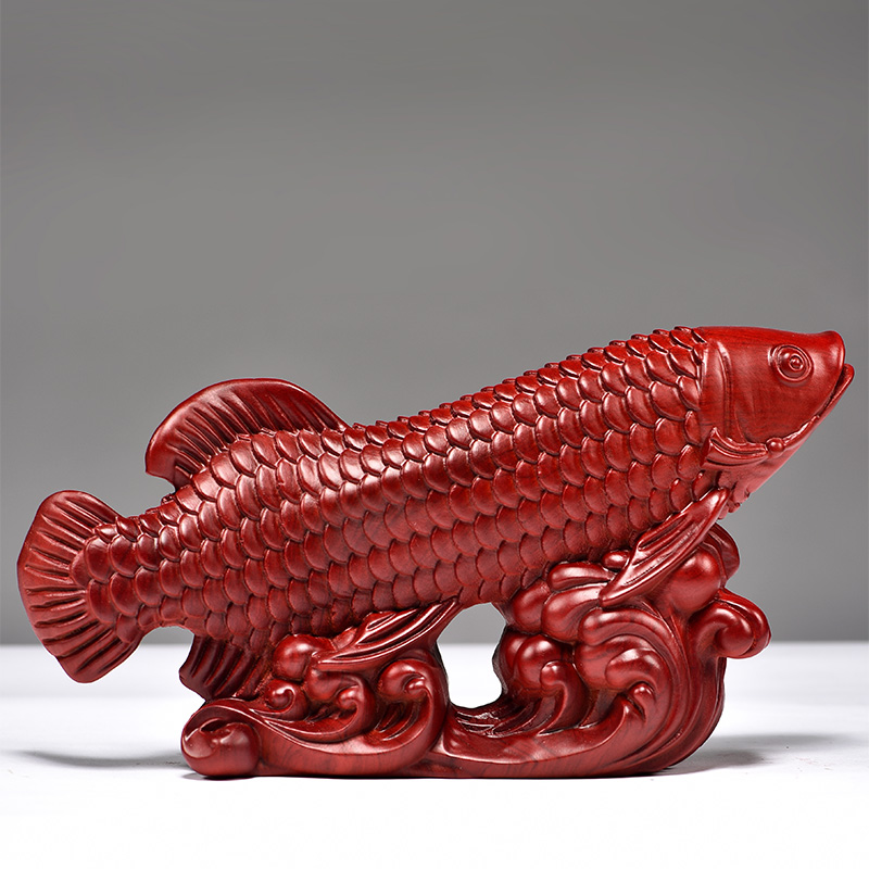 红色木质金龙鱼摆件实木雕刻年年有鱼家居客厅玄关装饰摆设工艺品