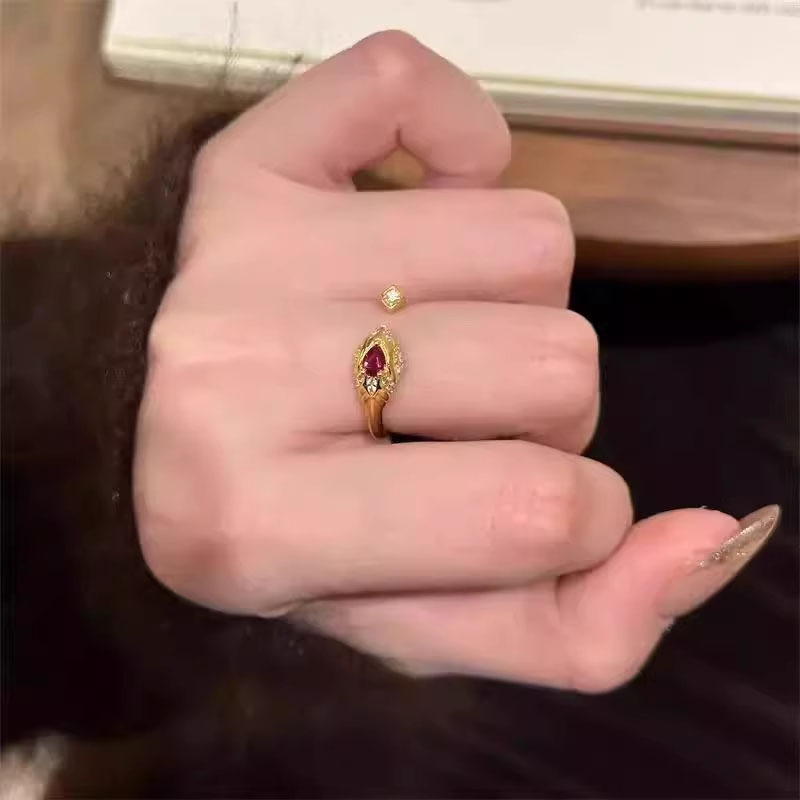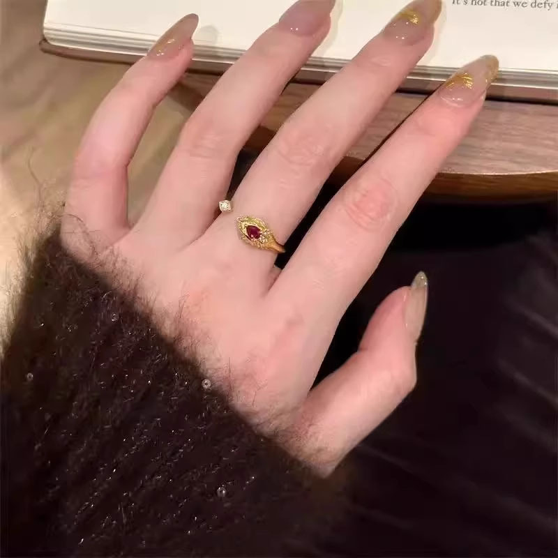 蛇年生肖轻奢小众设计红色满钻本命年蛇形复古戒指