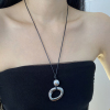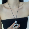 欧美小众不规则金属吊坠镀银黑色皮绳项链可调节极简高级感毛衣链