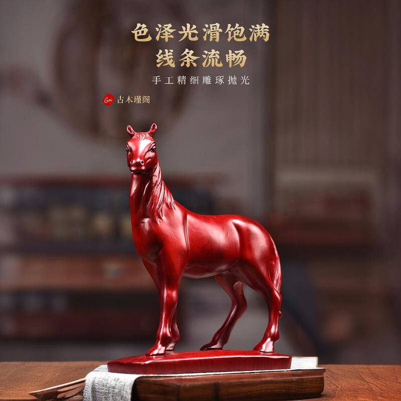 木雕马摆件马到成功生肖实木马摆件家居办公室客厅工艺品装饰摆件