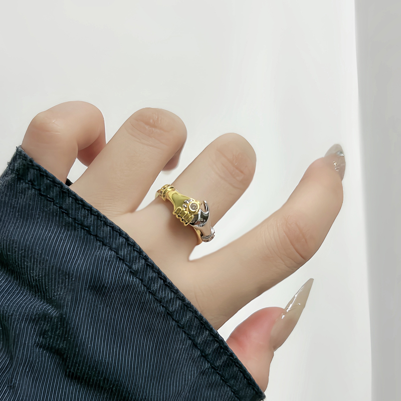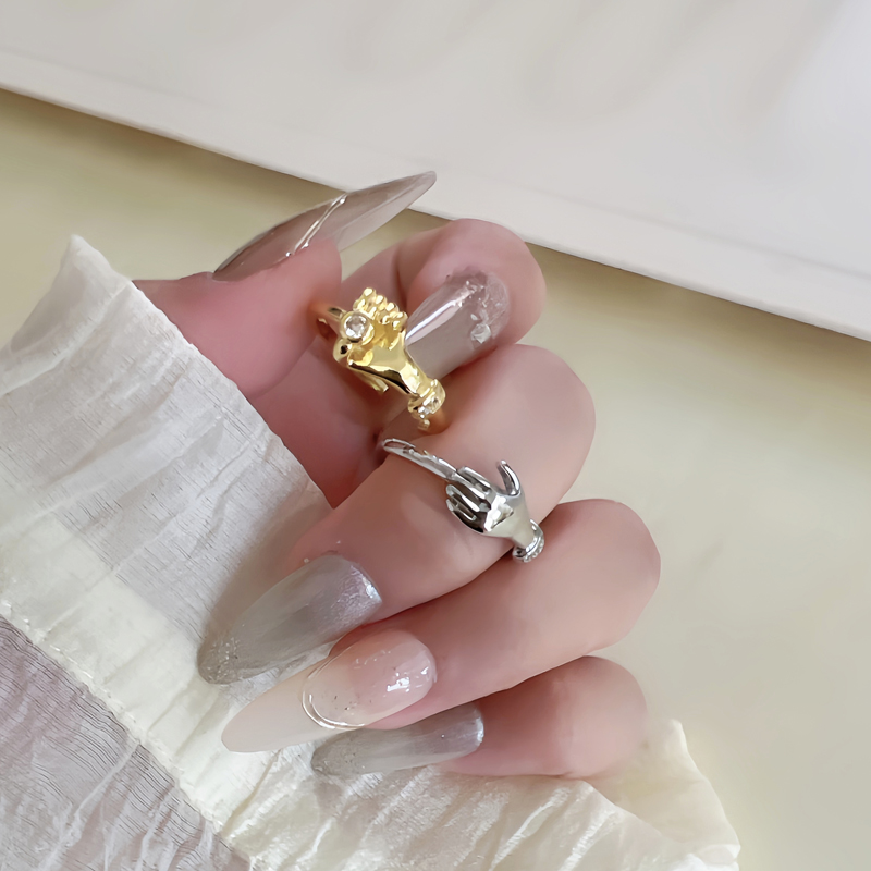 新品创意执子之手个性情侣对戒拥抱手小众设计时尚ins潮简约戒指