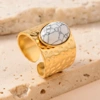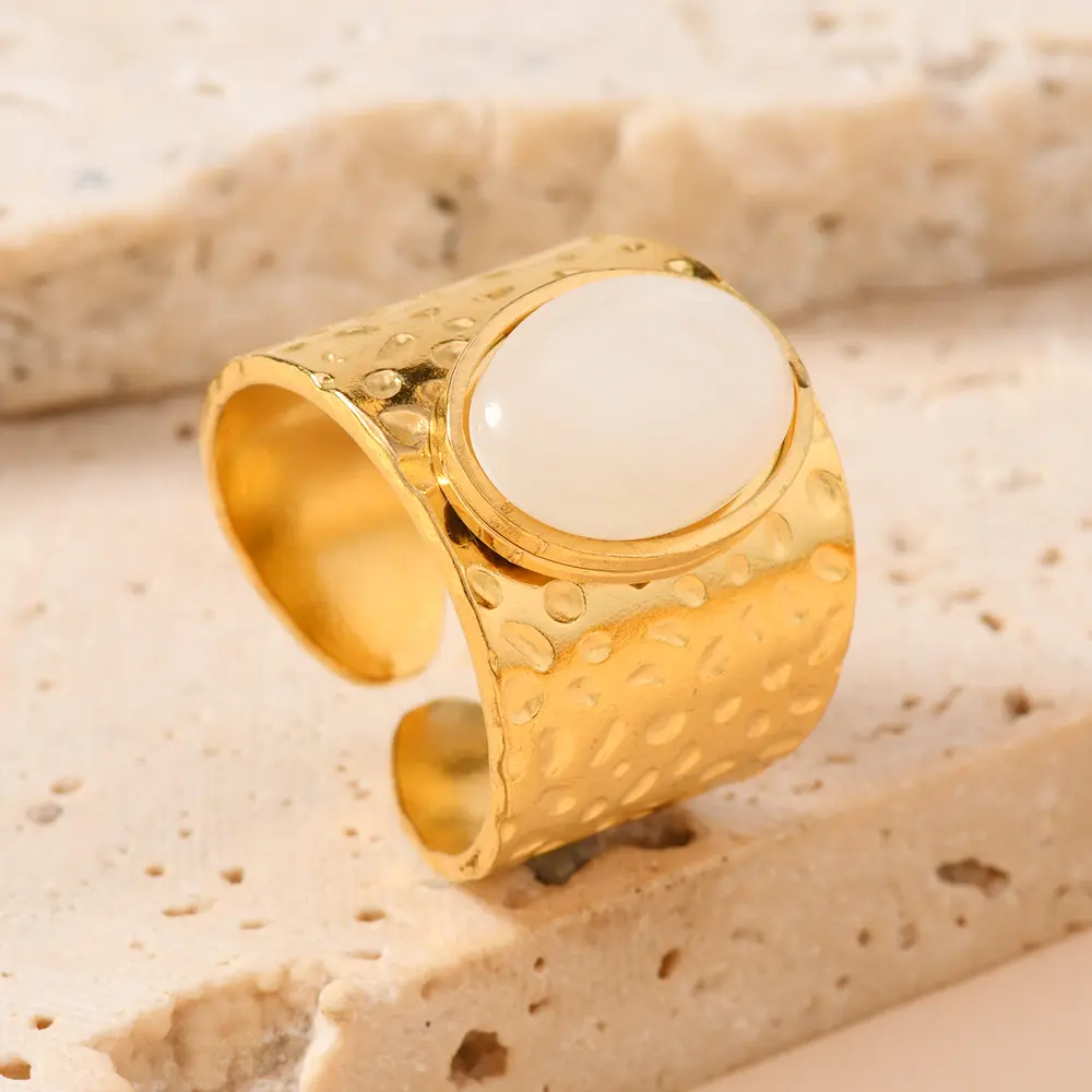 欧美风天然石不锈钢戒指轻奢设计油压椭圆宝石开口戒潮流百搭饰品