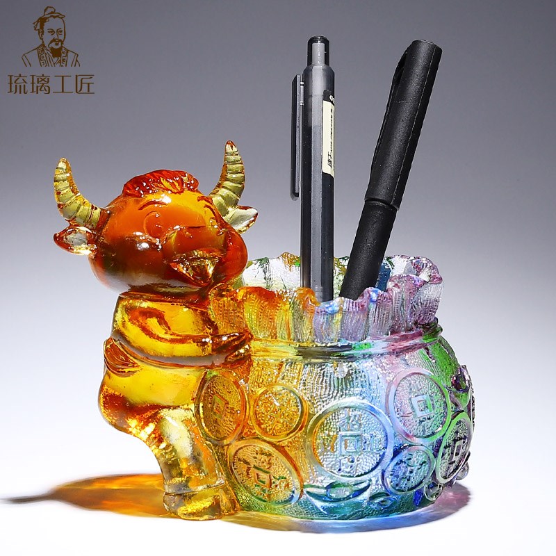 速发淄博琉璃十公生肖全套蛇龙笔筒摆件创意高档导领送办二室桌面