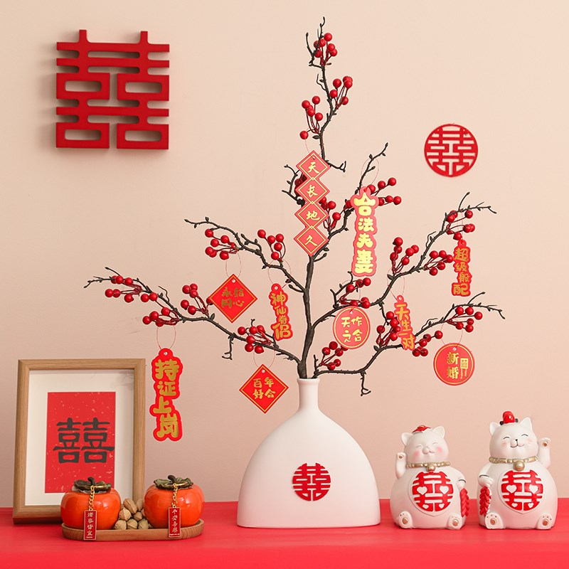 速发新房结婚婚礼布置装饰套发订式宴仪婚用品装财果喜字花瓶创意