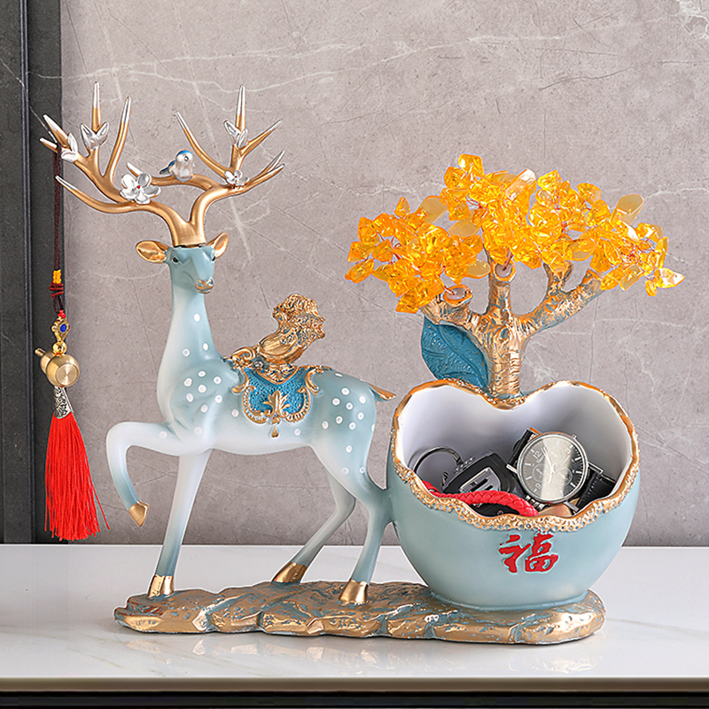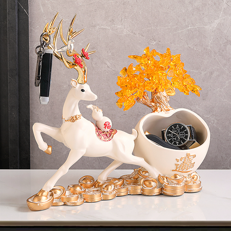 入户进门b口玄关钥匙收纳摆件福禄鹿客厅鞋柜新家装饰布置乔迁礼
