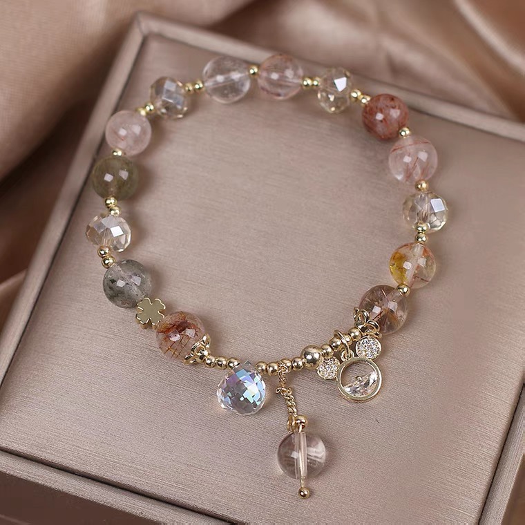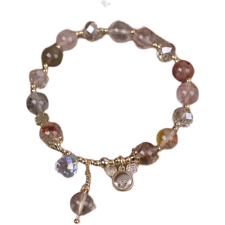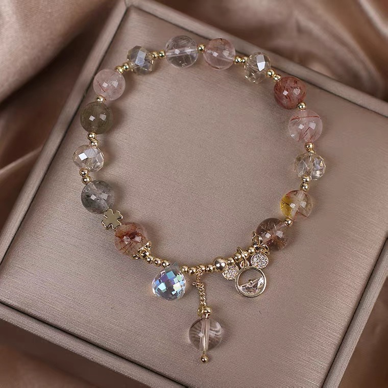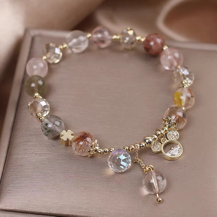 正品 彩发晶手链女ins小众设计绿草莓晶米奇吊坠手环闺蜜礼物首饰