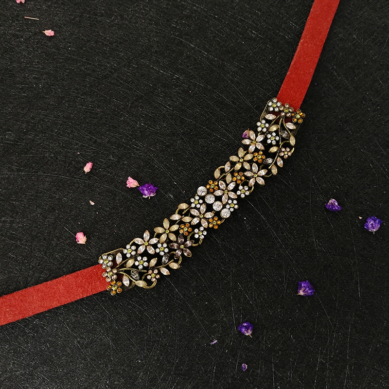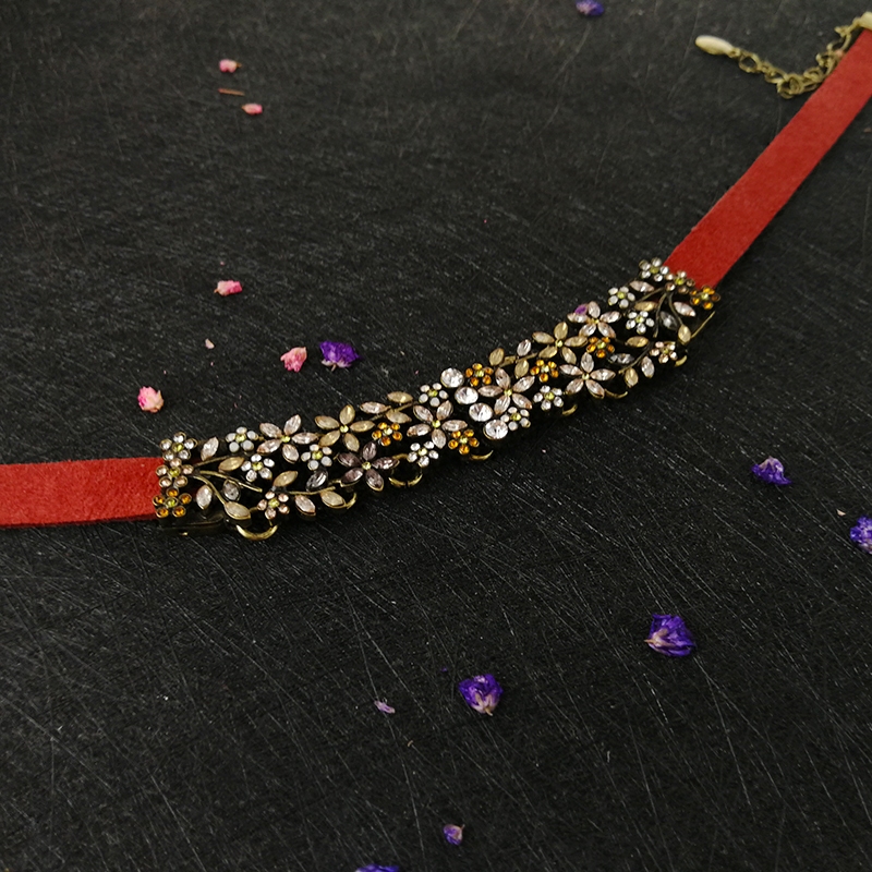 欧美日韩饰品 Vintage 打标花树叶水钻复古做旧夸张红色颈链