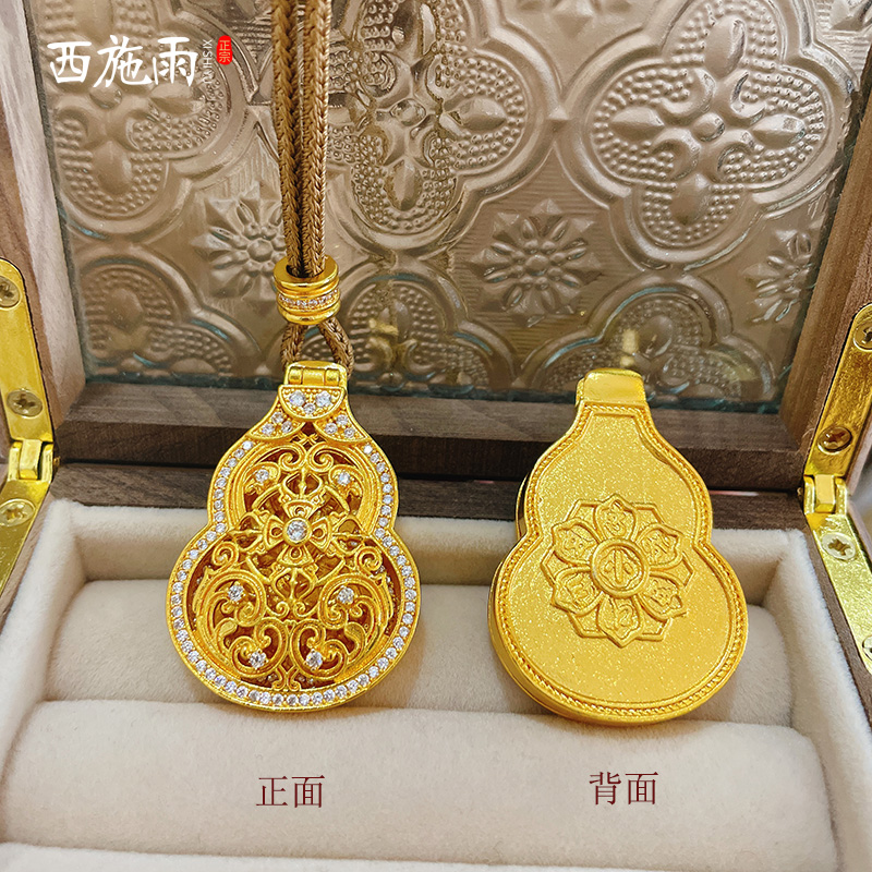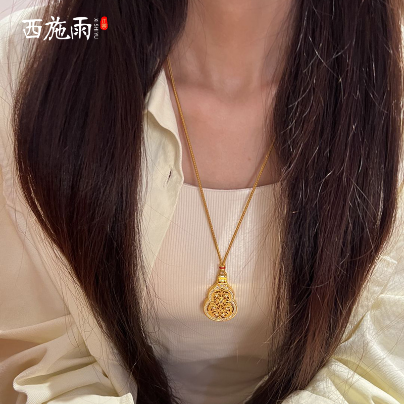 金店同款沙金葫芦随身佛项链吊坠点钻花丝新中式福禄毛衣链女礼物
