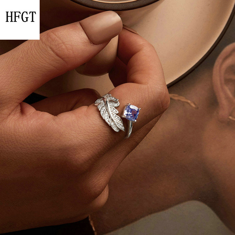 原创优雅大气羽毛开口戒指女 紫色奢华法式宫廷风925纯银薰衣紫指
