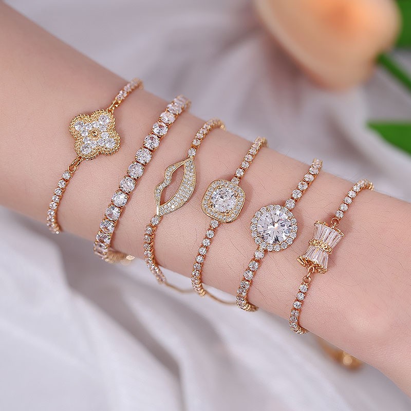 欧美经典香槟金锆石手链女不掉色镶大钻石气质百搭抽拉可调节手串