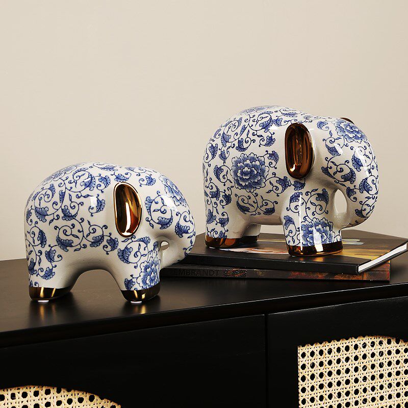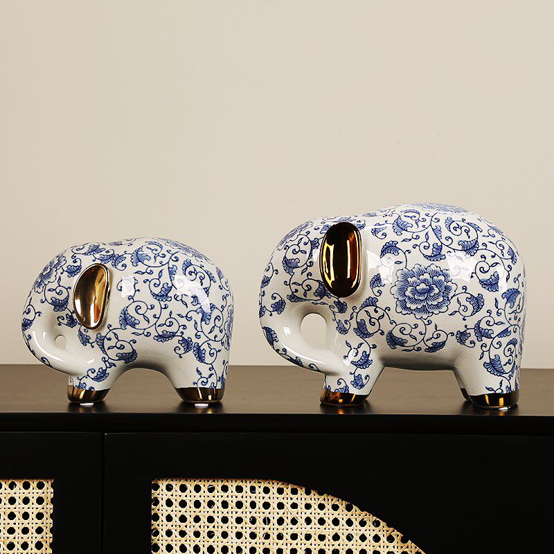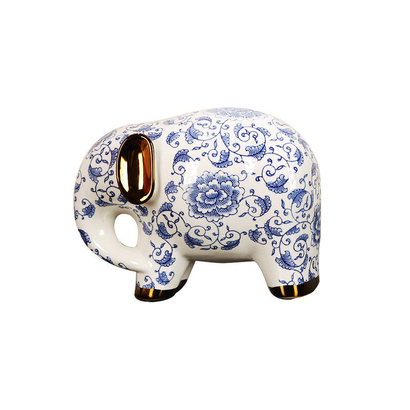 青花瓷吉祥大象高温陶瓷手工装饰摆件客厅桌面玄关电视柜乔迁送礼