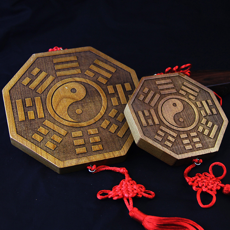 桃木八卦盘阴阳八卦镜桃木镜挂件饰品太极图客厅门口摆件