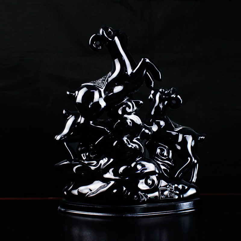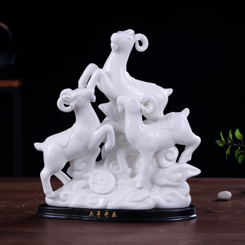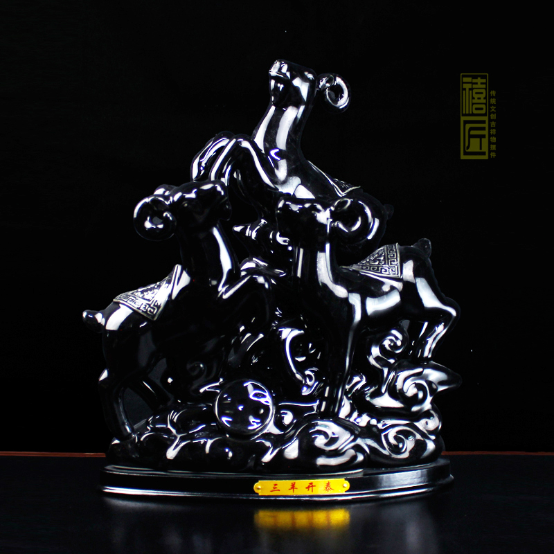 福建德化黑色陶瓷器三羊开泰摆件三阳G开泰工艺品装饰品酒柜电视