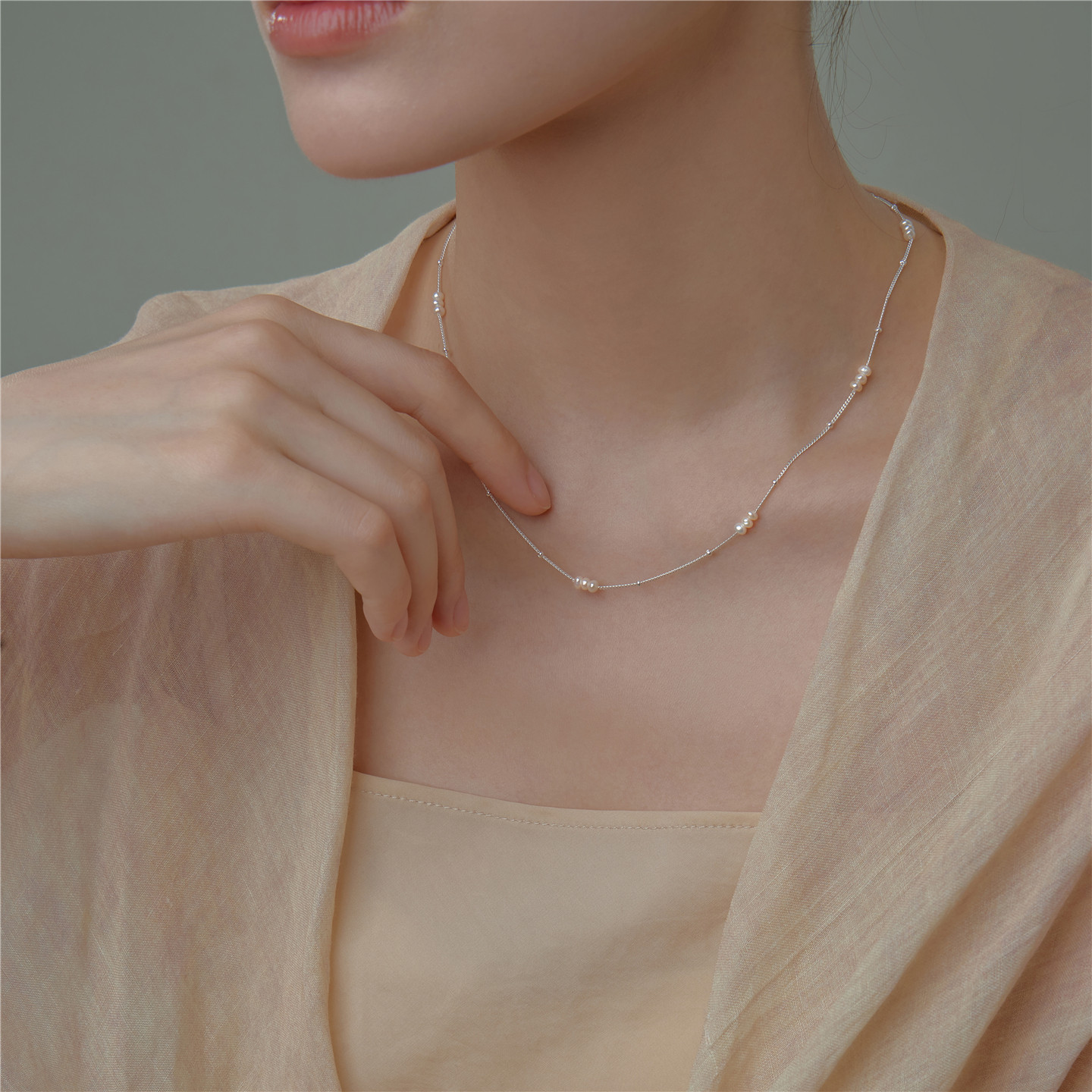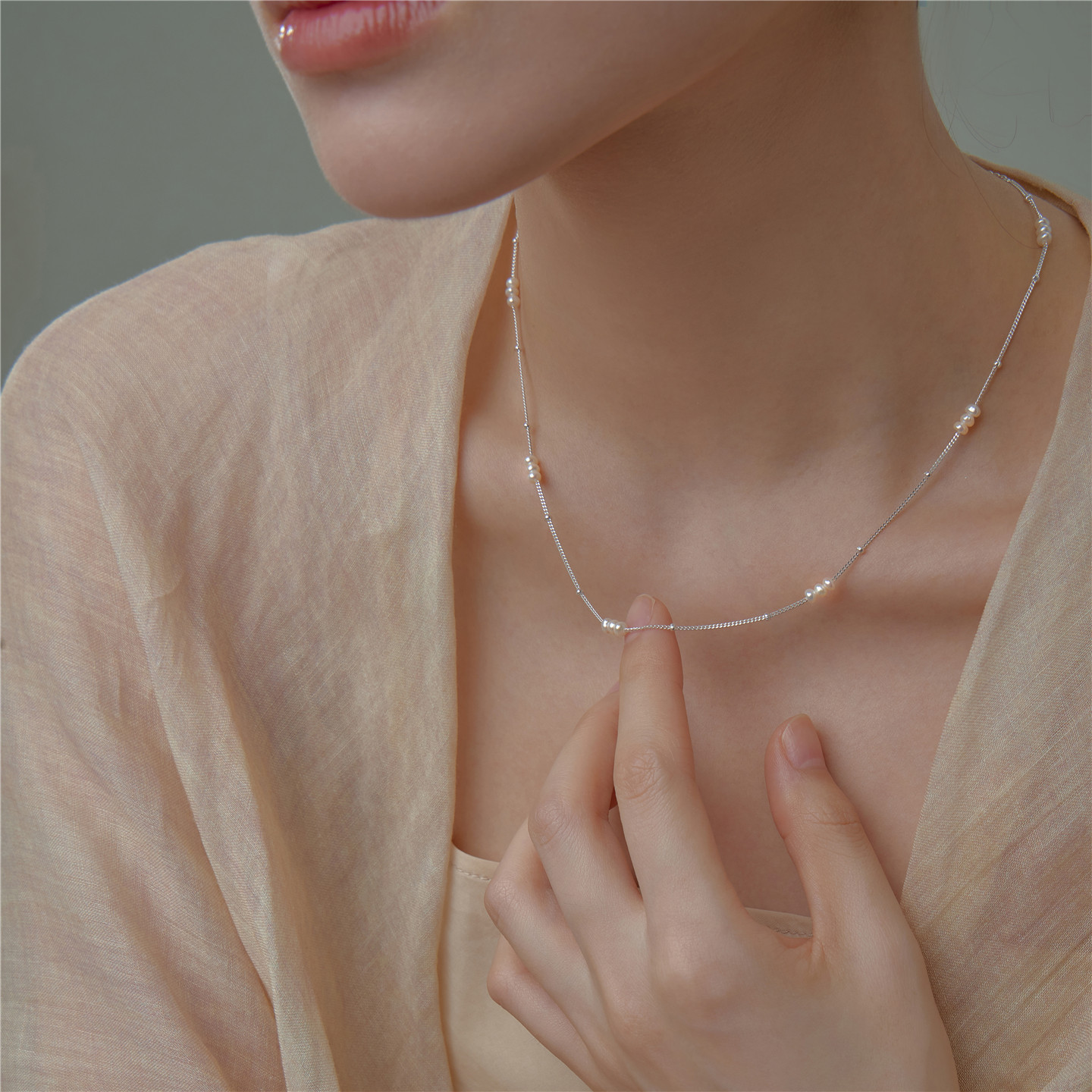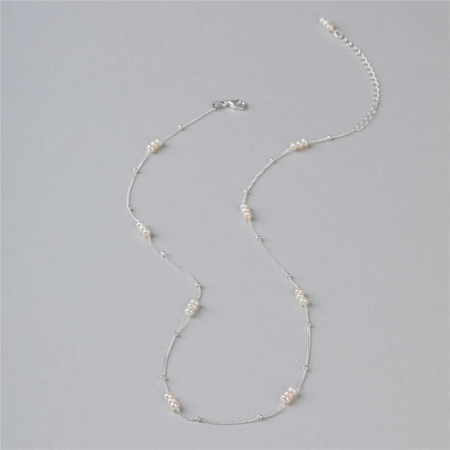 梵灵原创小众设计师款间隔迷你珍珠项链S925纯银文艺复古优雅气质