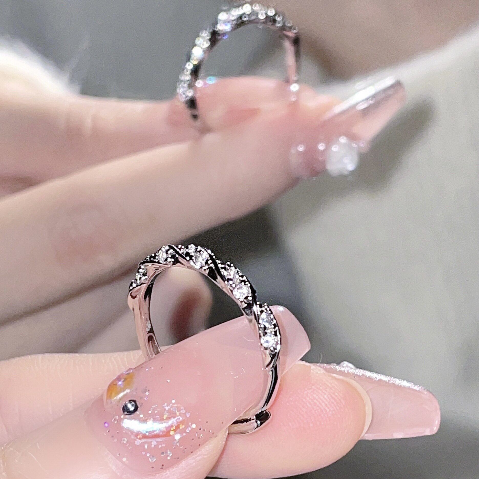 925银缠绕爱河碎钻戒指女小众级轻奢ins风爆闪素戒麻花开口饰品