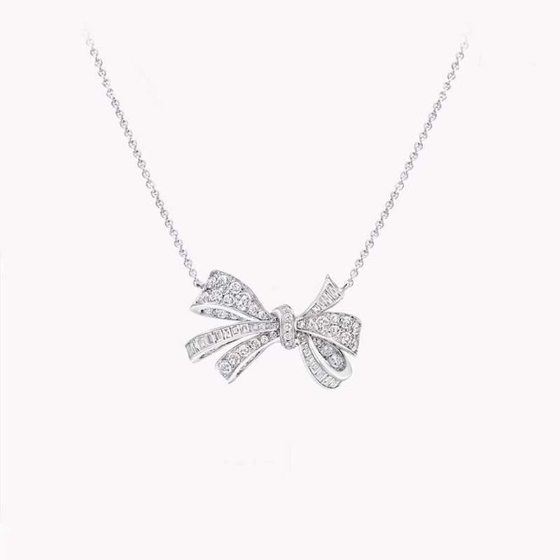 蝴蝶结项链女s925纯银镶钻无水滴幻影锁骨链轻奢高级设计感不掉色