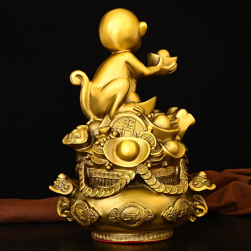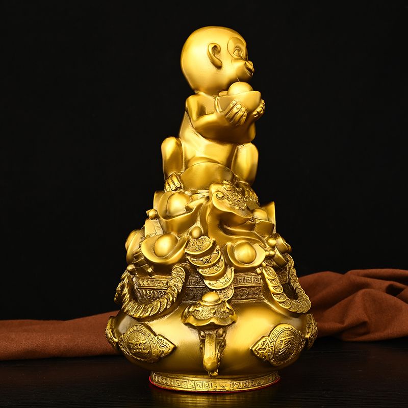 金猴献宝铜猴子摆件纯铜聚宝盆福袋猴客厅办公室象上封猴生肖福猴