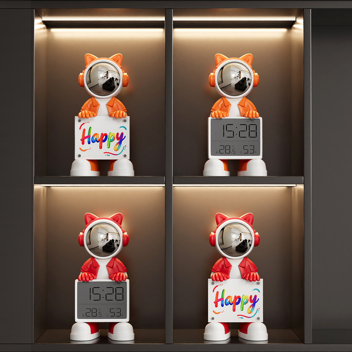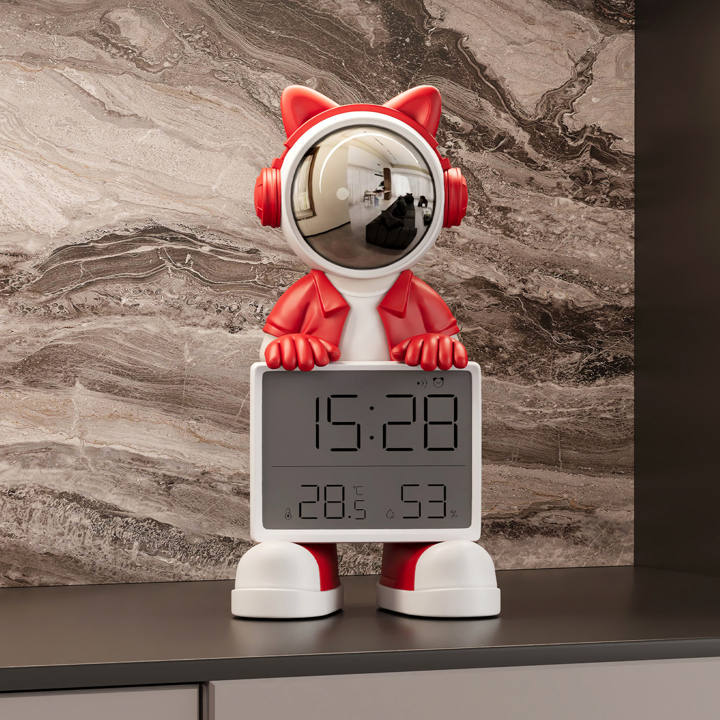 太空人宇航员时钟桌面摆件客厅玄关电视柜装饰卧室电子时钟摆台式