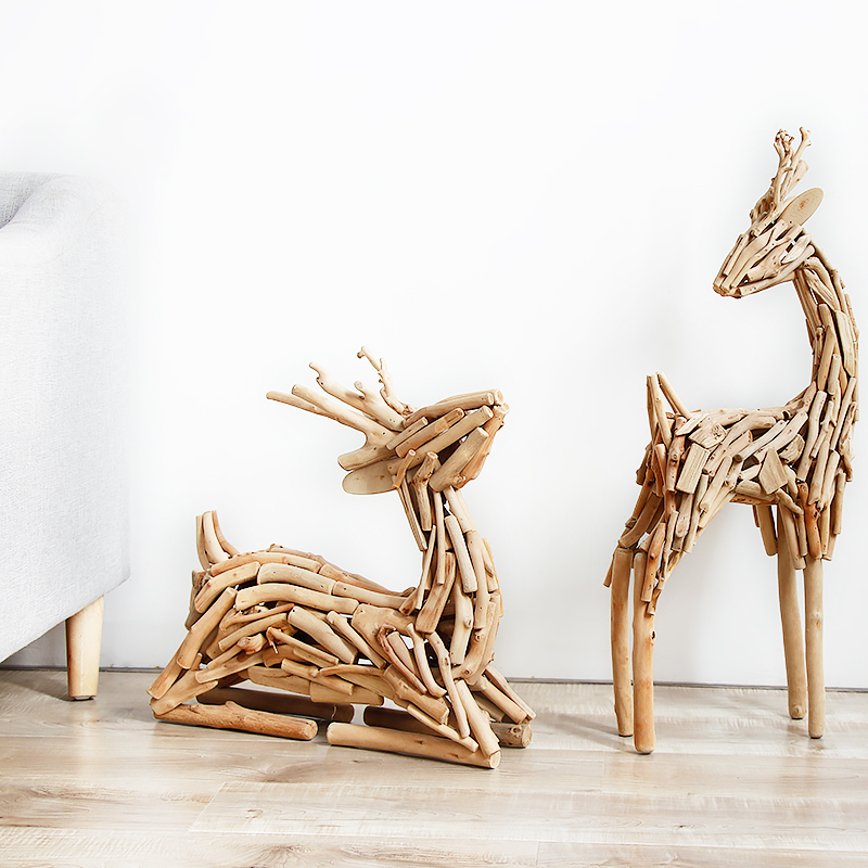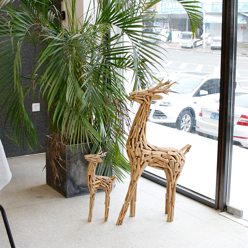 新春装饰摆件手工动物木鹿摆件落地软装办公民宿室内家居橱窗结婚