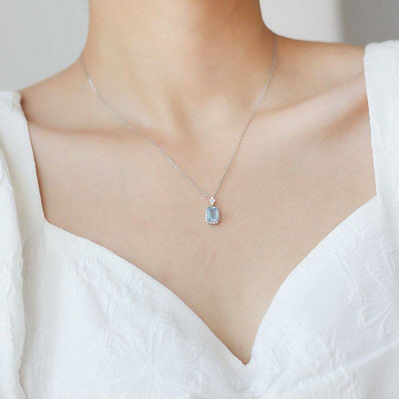 香水瓶海蓝宝镀银链送新款女友气质个性女轻项链锁骨七夕奢超仙