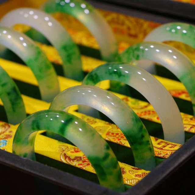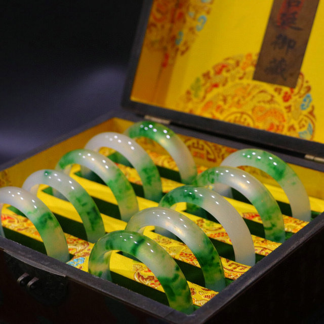 精品收藏级老翡翠女款手镯老坑冰种料老翠玉旺夫百搭款老玉手环