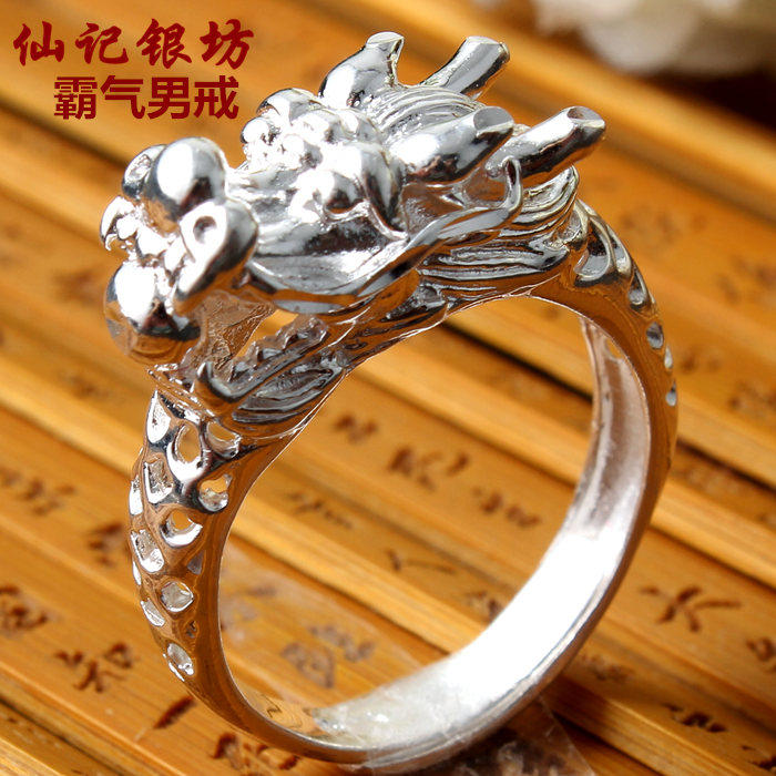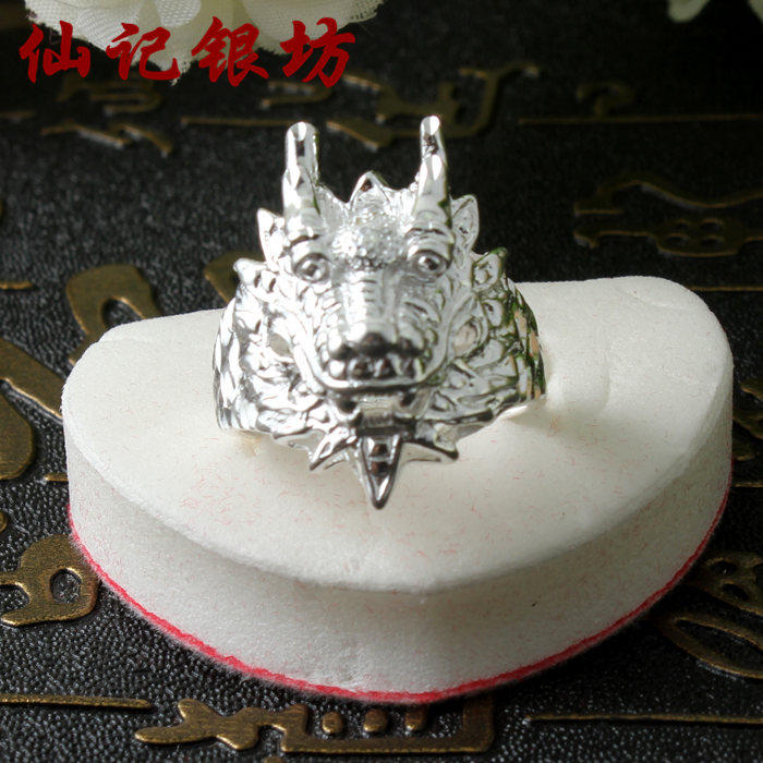 990纯银龙戒指立体龙开口龙头戒指本命年龙年男士霸气指环礼物