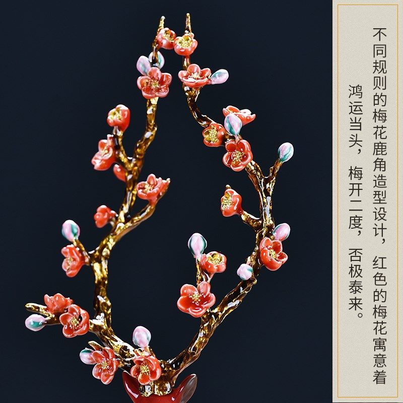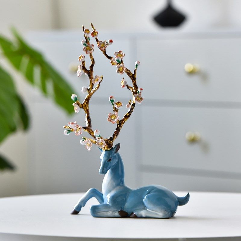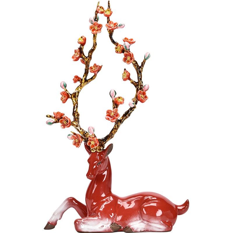 陶瓷梅花鹿招财摆件创意家居客厅吉祥动物红色鹿装饰品结婚送礼品