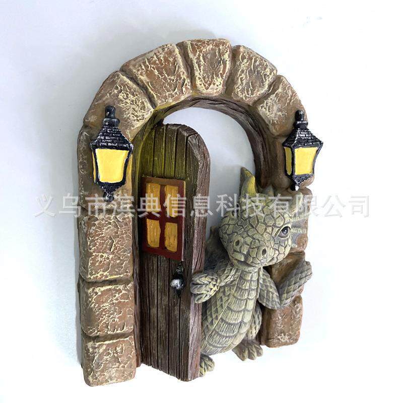 新品可爱阳台上的小龙摆件恐龙开门花园摆件树脂工艺品摆件雕像