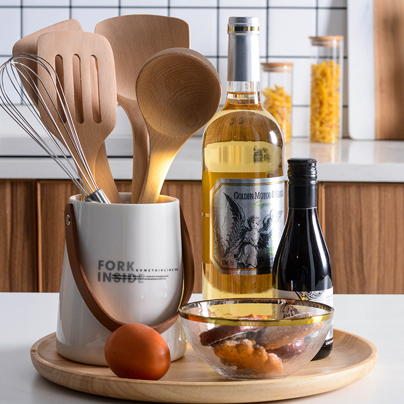 意面竹木厨具红酒套装大理石拼接砧板收纳桶软装厨房样板间装饰品