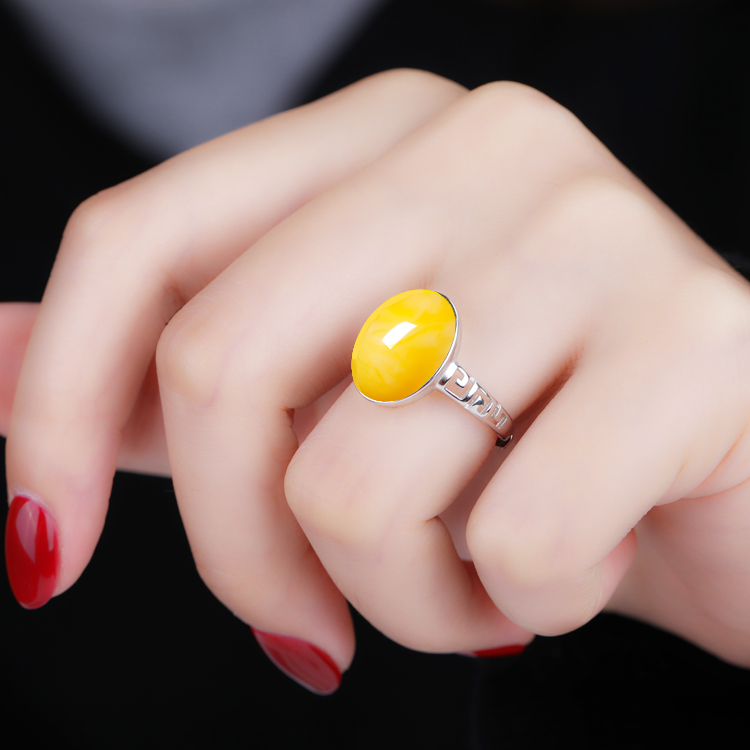 S925纯银戒指空托镶嵌蜜蜡绿松石琥珀时尚女款银戒托 11*14 12*15