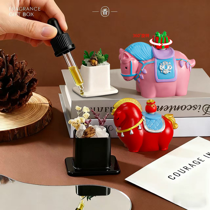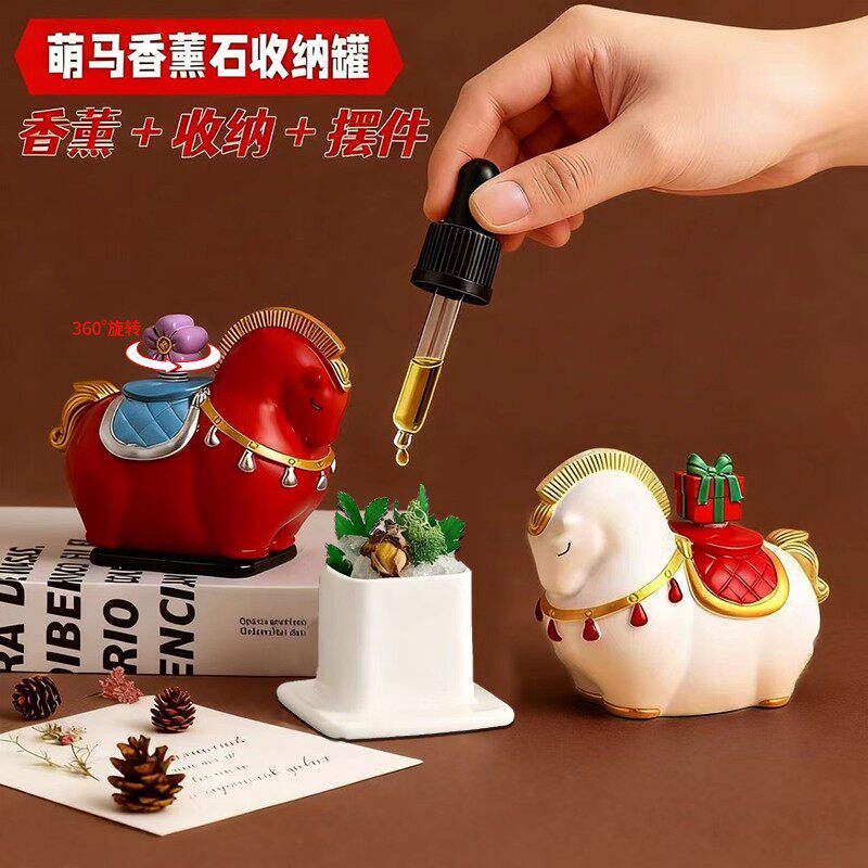 2026马年吉祥物马上有钱花小摆件香薰香氛拓香石桌面装饰新年礼品