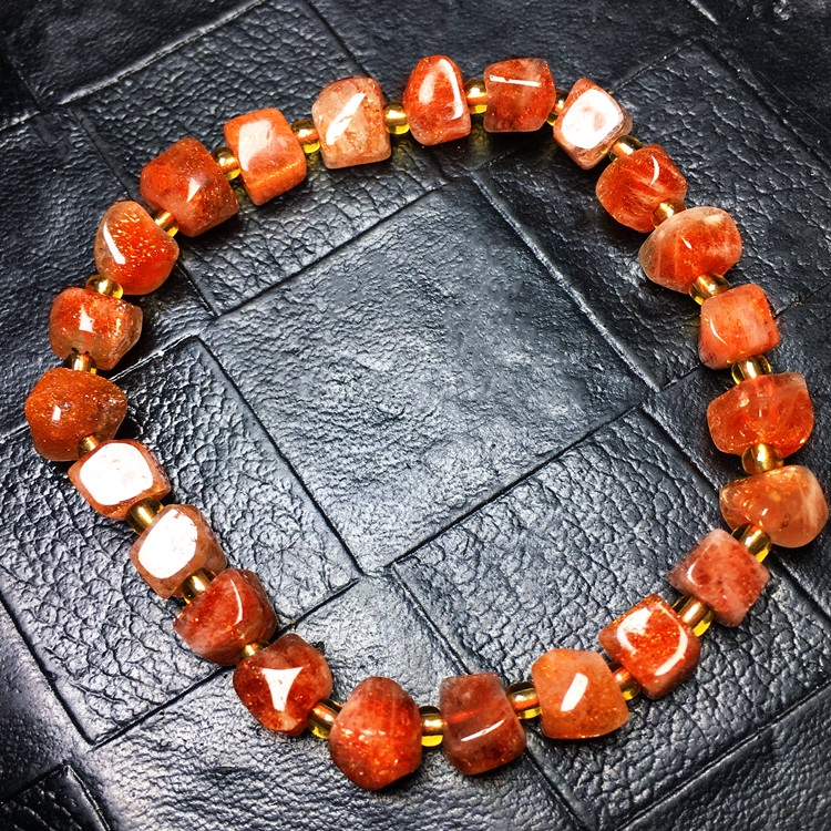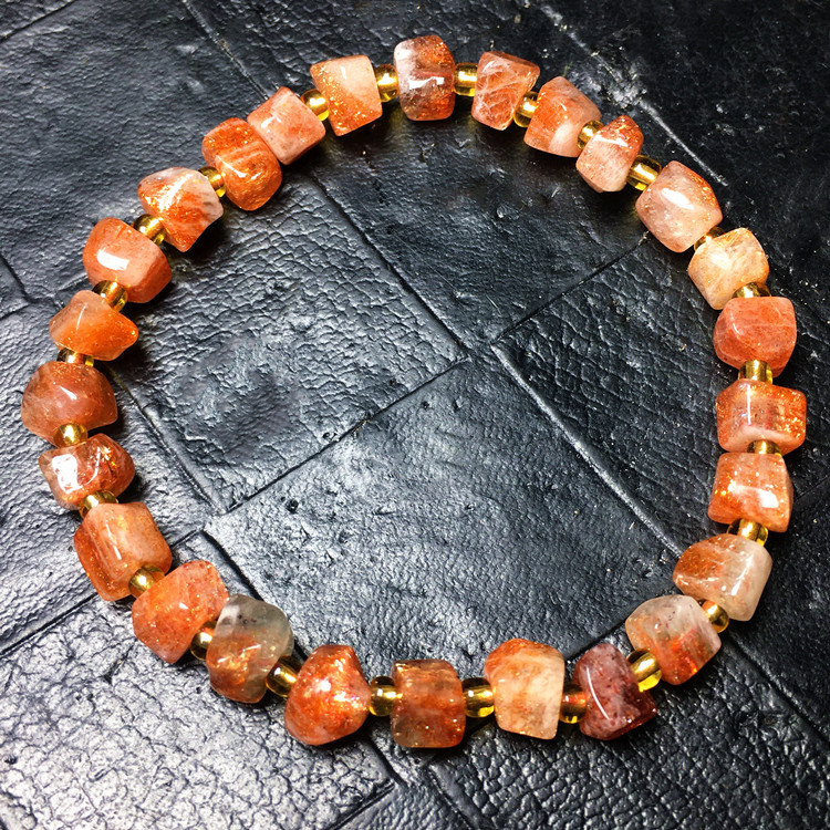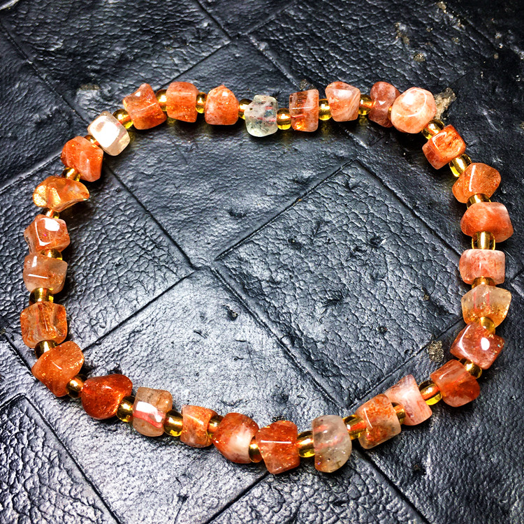 天然太阳石手链金色草莓晶随形橙色水晶男女同款单圈手串饰品礼物