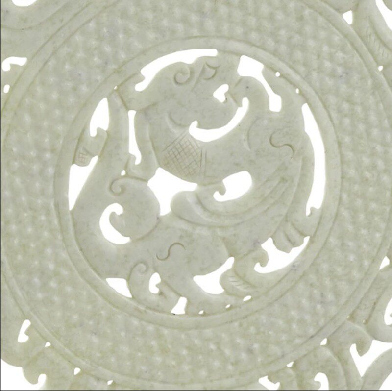 新家居酒店样板间玄关软装镂空雕刻白色玉片玉璧