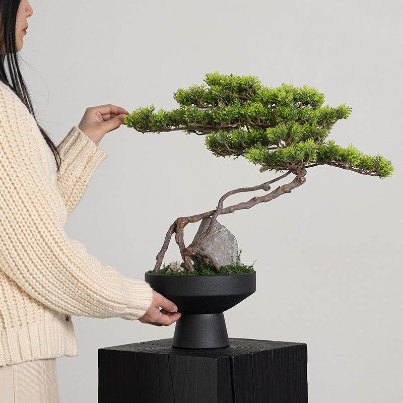 东方美学陶瓷迎客松绿植盆景茶室玄关台角落高级感摆件